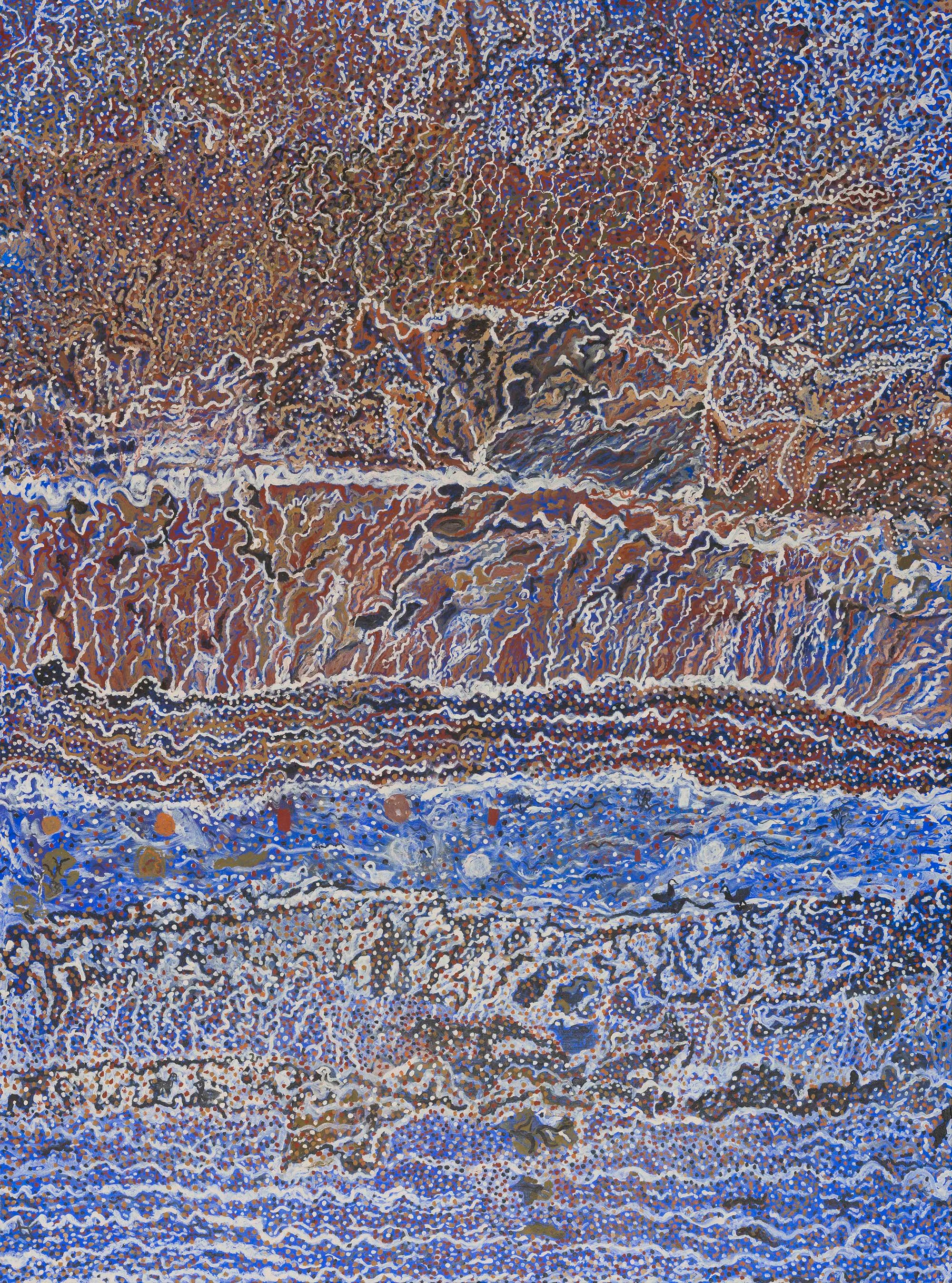 Judy Watson, Waanyi people, Australia b.1959 / tow row 2016 / Commissioned 2016 to mark the tenth anniversary of the opening of the Gallery of Modern Art. This project has been realised with generous support from the Queensland Government, the Neilson Foundation and Cathryn Mittelheuser, AM, through the Queensland Art Gallery | Gallery of Modern Art Foundation / Collection: Queensland Art Gallery | Gallery of Modern Art / © Judy Watson