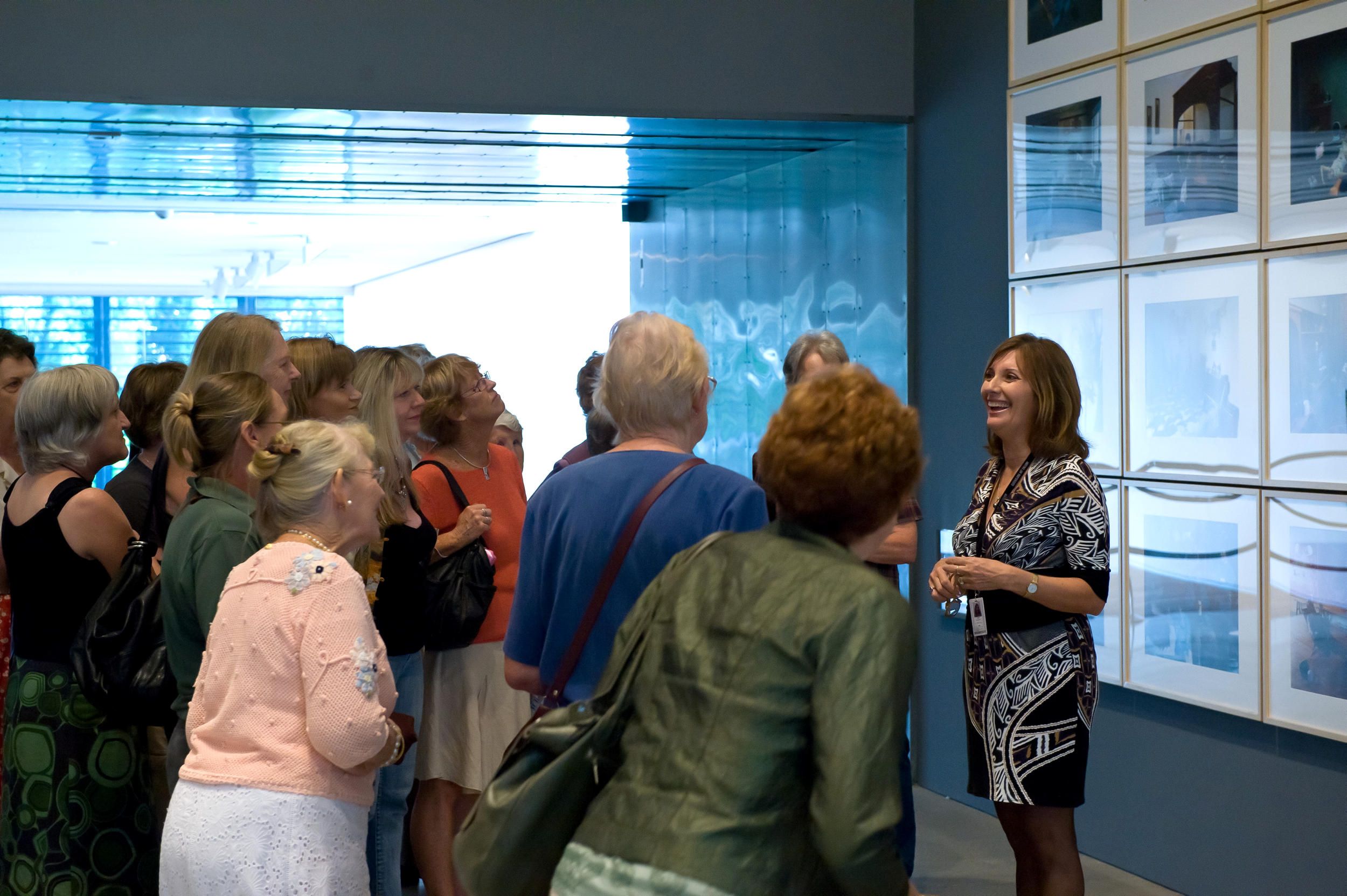 A Volunteer Guide engages visitors on a tour at the Gallery of Modern Art (GOMA). Photography by Natasha Harth | QAGOMA