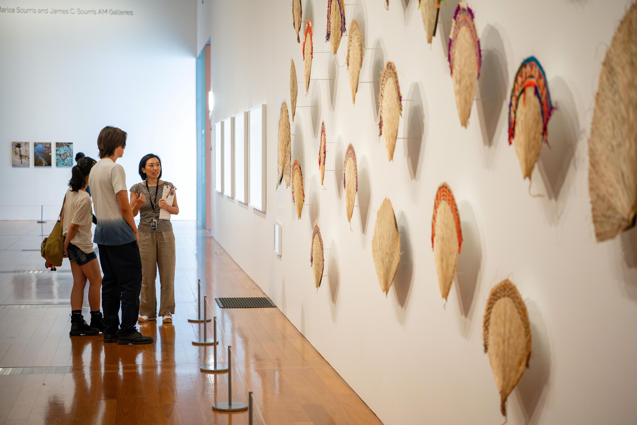 A Volunteer Guide engages visitors on a tour at the Gallery of Modern Art (GOMA). Photography by Nicholas Umek | QAGOMA / View full image