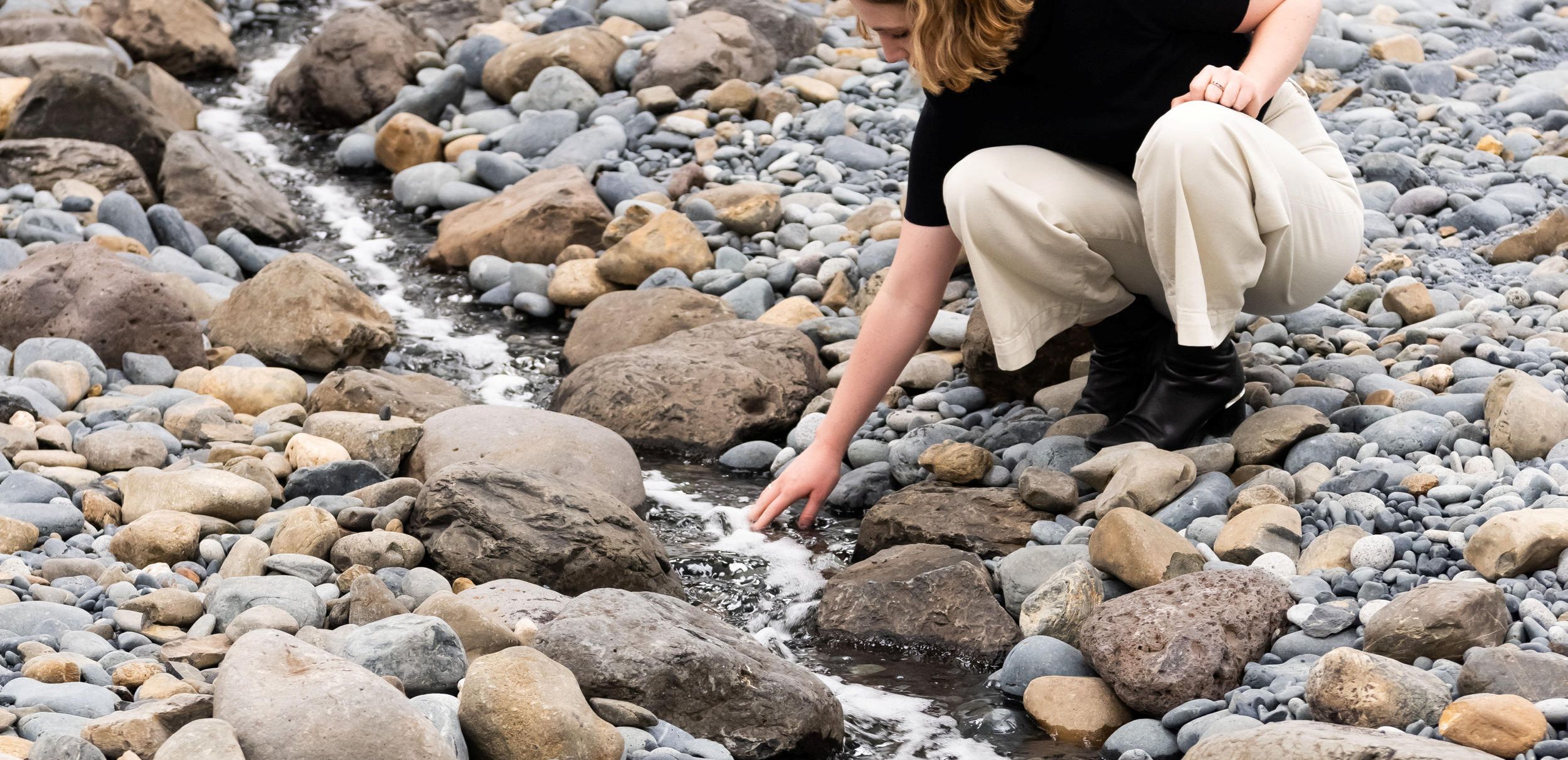 Olafur Eliasson, Denmark b.1967 / Riverbed 2014 (installation view, GOMA, 2019) / Water, rock (volcanic stones [blue basalt, basalt, lava], other stones, gravel, sand), wood, steel, plastic sheeting, hose, pumps / Purchased 2021. The Josephine Ulrick and Win Schubert Charitable Trust / Collection: The Josephine Ulrick and Win Schubert Charitable Trust, Queensland Art Gallery | Gallery of Modern Art / © 2014 Olafur Eliasson / Photograph: N Harth © QAGOMA / View full image