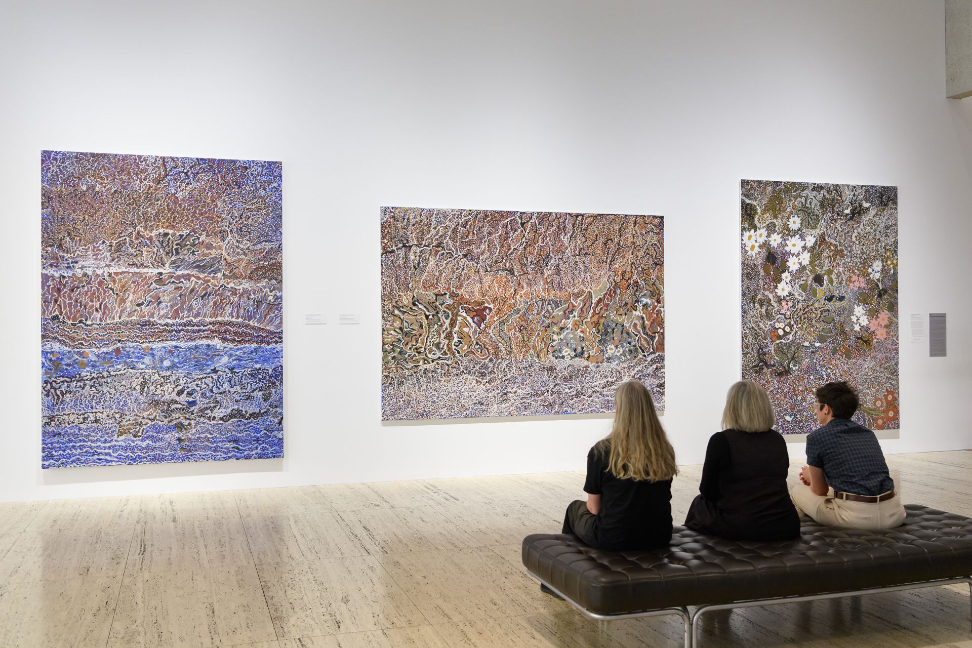Hear from Sally Butler, Associate Professor of Art History, University of Queensland, as she discusses Mavis Ngallametta’s later large canvas paintings through the lens of emotional ecology. Discover how Mavis Ngallametta’s paintings reflect an intimate, emotional knowledge of her country, functioning more as spiritual portraits of place rather than landscapes, through the unique methods she used to personalise the locations she portrayed.