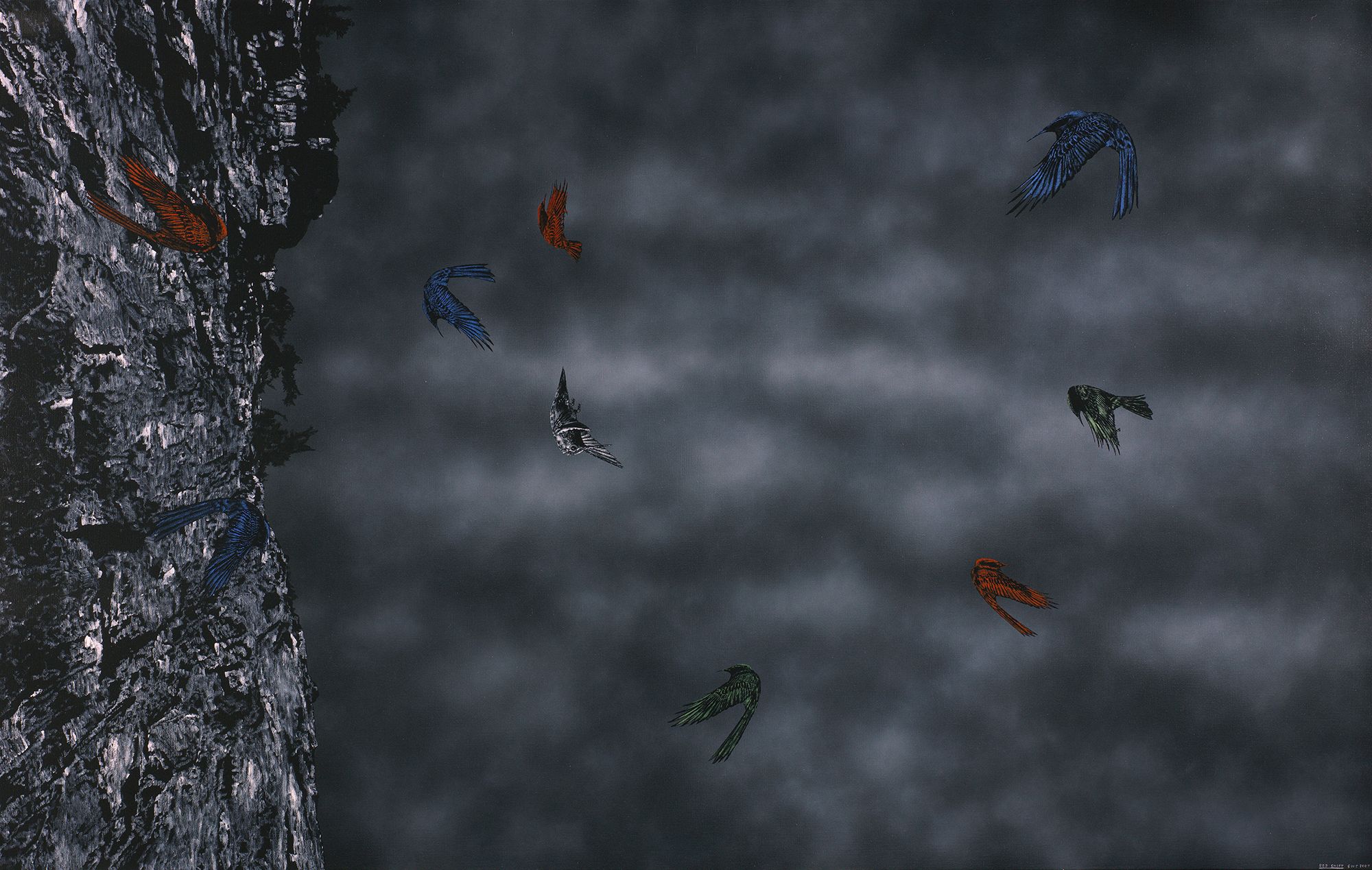 Shane Cotton, New Zealand b.1964 / Red Shift 2006-07 / Synthetic polymer paint on canvas / 200 x 300cm / Purchased 2007. The Queensland Government's Gallery of Modern Art Acquisitions Fund / Queensland Art Gallery | Gallery of Modern Art / © Shane Cotton / View full image
