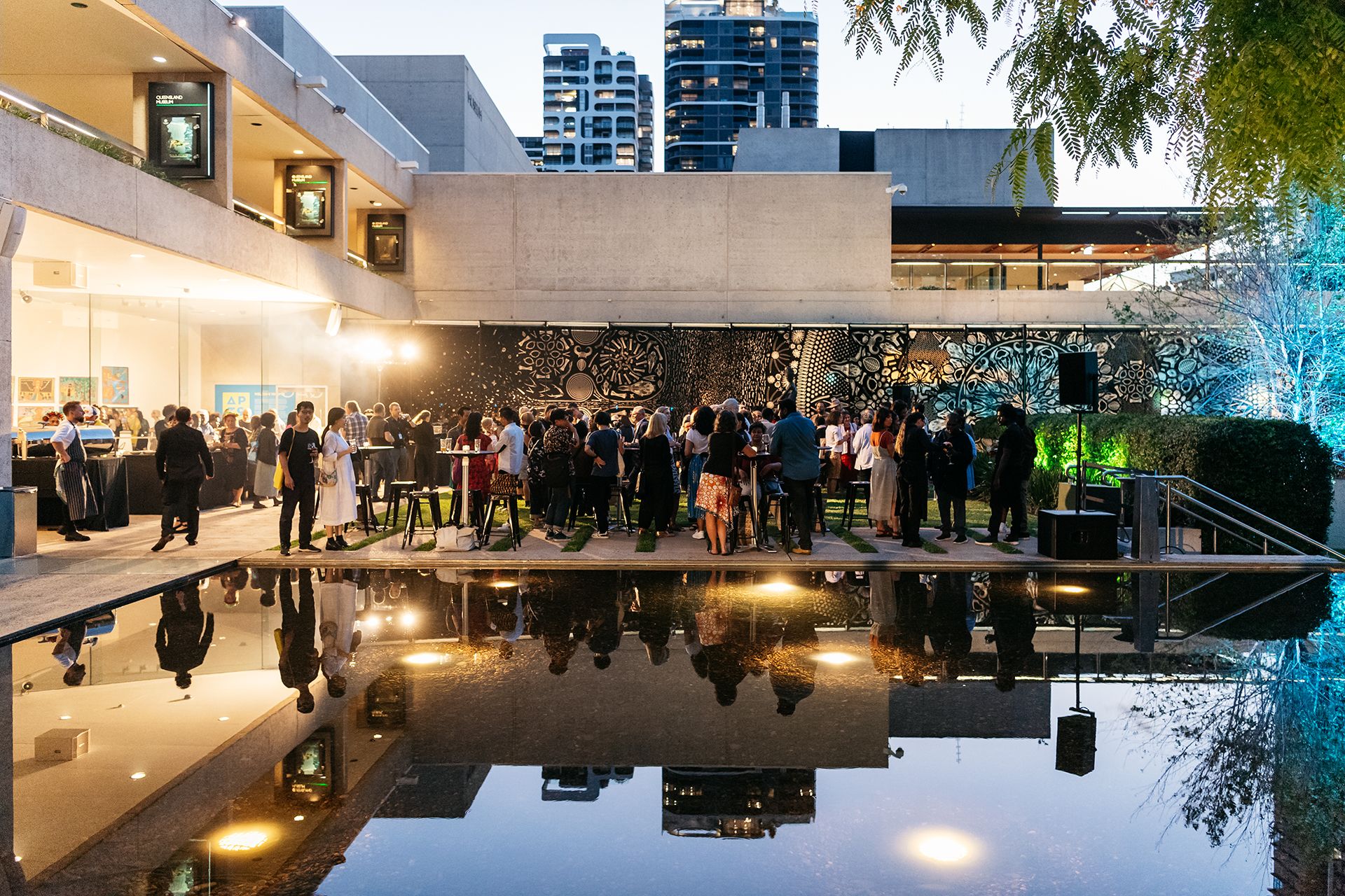 With two levels of manicured lawns, a drop fountain, stunning Dandelion water feature and impressive sculpture works by renowned Australian and international artists, the Sculpture Courtyard is a stunning backdrop for a cocktail event or pre-dinner drinks.