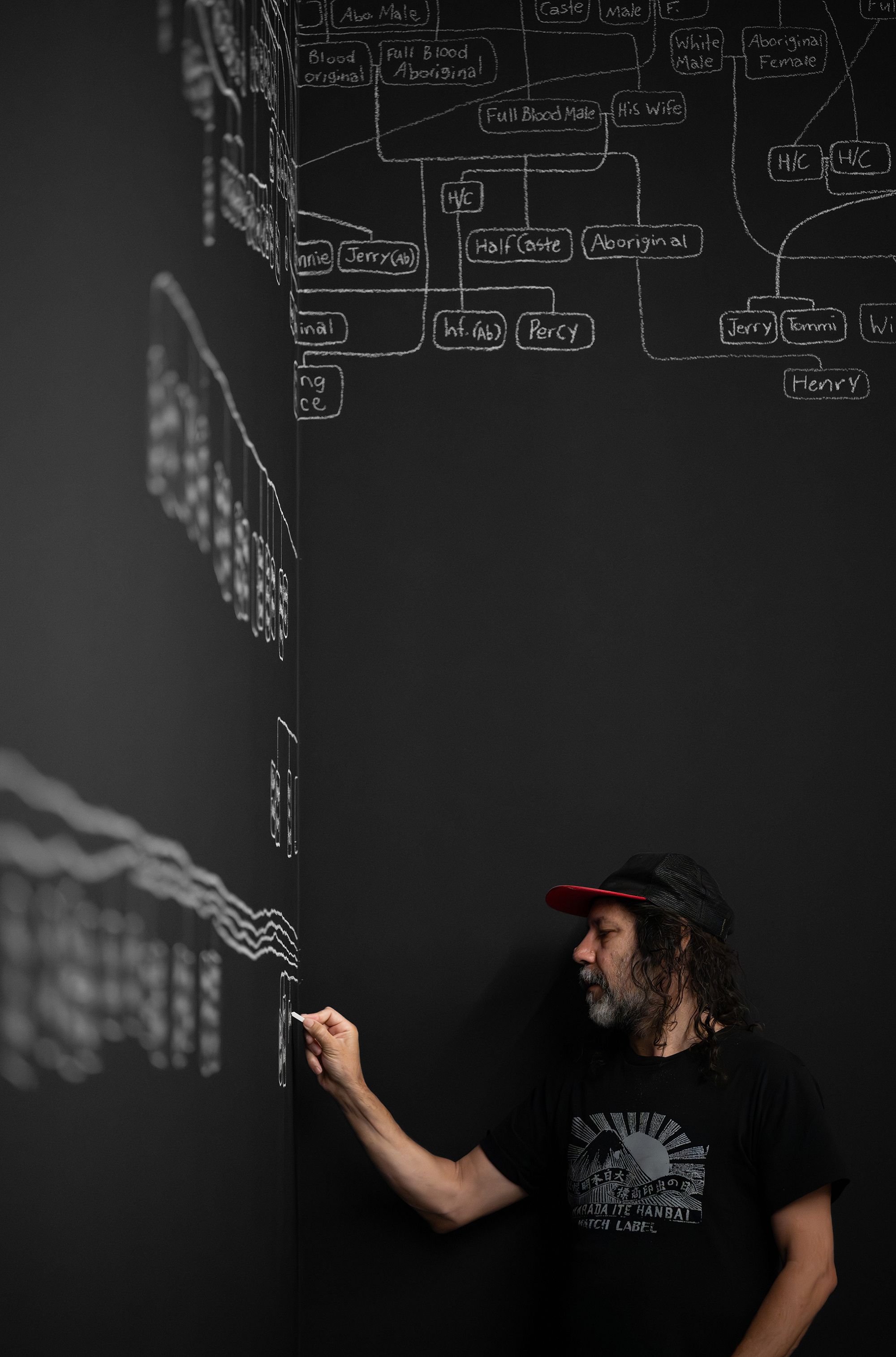Archie Moore, Kamilaroi/Bigambul peoples, Australia b.1970 / kith and kin 2024 (Archie Moore at the Gallery of Modern Art, Brisbane 2025) / Presented to Queensland Art Gallery | Gallery of Modern Art and Tate by Creative Australia on behalf of the Australian Government 2024 / Collection: Queensland Art Gallery | Gallery of Modern Art / © Archie Moore / Photograph: N Umek © QAGOMA / View full image