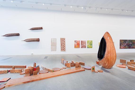FLOYD, Emily Australia b.1972 Permaculture crossed with feminist science fiction 2008 Laminated timber, timber, vinyl, polyurethane varnish 207 pieces: 244 x 580 x 1790cm (installed, variable) Acc. 2009.002.001-207 Purchased 2009. The Queensland Government’s Gallery of Modern Art Acquisitions Fund / View full image