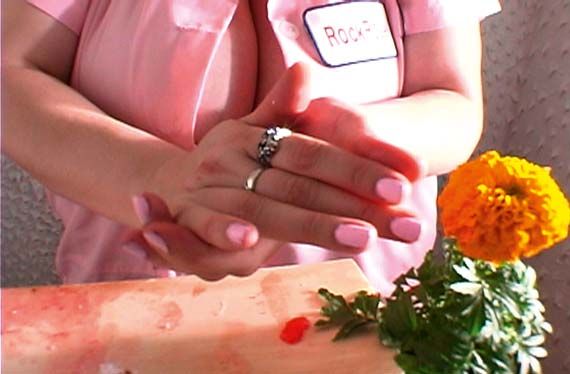 Mika Rottenberg, Argentina b.1976 / Mary’s cherries (stills) 2004 / Single-channel video installation: 5:50 minutes, colour, sound, 4:3, 28” CRT monitor and mount, media player, speakers, wood, carpet, stucco, fluorescent light, fan and concrete blocks / Purchased 2013. Queensland Art Gallery | Gallery of Modern Art Foundation / Collection: Queensland Art Gallery / Images courtesy: The artist and Andrea Rosen Gallery, New York / © The artist /The presentation of Mika Rottenberg’s Mary’s cherries in ‘Harvest’ is supported by Council on Australia Latin America Relations / View full image