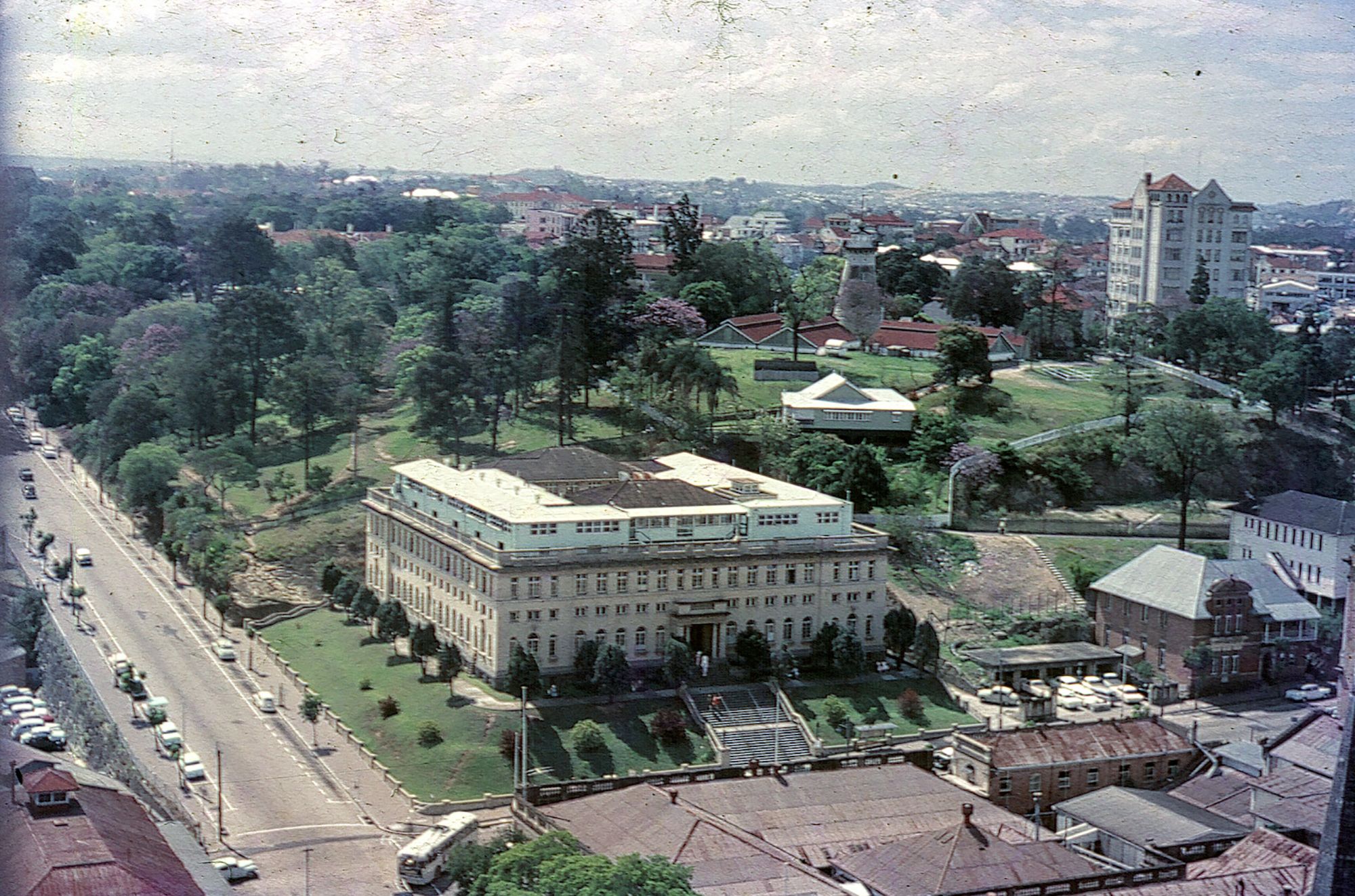 Brisbane Dental College, corner Turbot and Albert Streets, the YMCA Sailors Department, with Craigston apartments and the Observatory in the background, 1961 / 99183982284802061 / Courtesy: John Oxley Library, State Library of Queensland, Brisbane / View full image