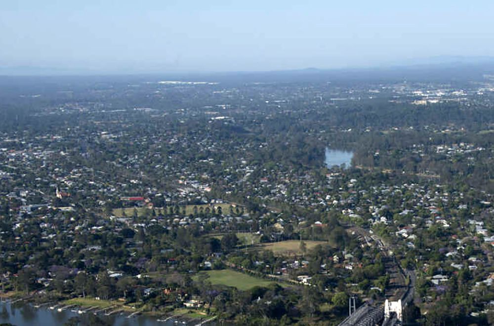 View over Indooroopilly toward Graceville today showing the Graceville Methodist Church in the mid distance / Courtesy: Wikimedia Commons / View full image