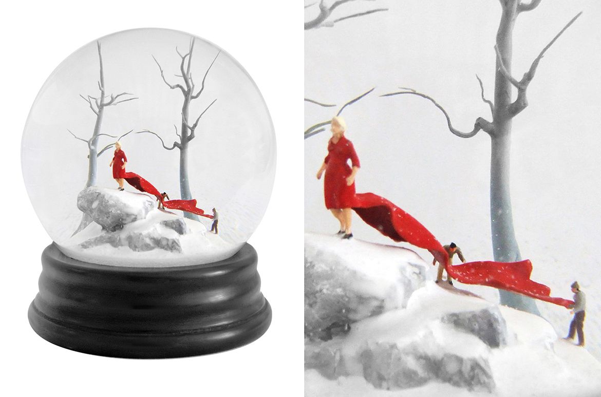 For their ‘Traveler’ series, artists Walter Martin and Paloma Muñoz have used snow globes to transport you into miniature worlds of fantastical snowscapes, where the boundaries between reality and imagination blur.