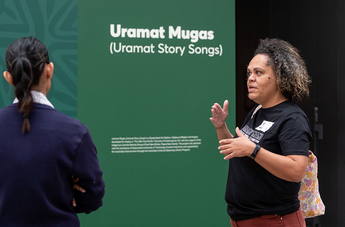 Vanessa Gordon speaks to students about works in APT10 / Photograph: C. Callistemon © QAGOMA / View full image