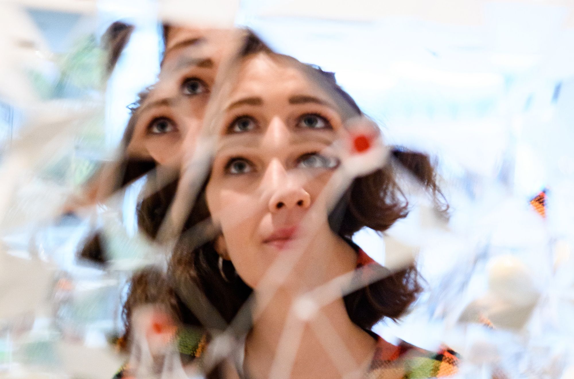 Lightning for Neda 2009 doesn’t behave like an ordinary mirror. In each of the six panels that constitute the work, artist Monir Shahroudy Farmanfarmaian (1924-2019) used over 4000 mirror shards to activate a myriad of patterns across a glittering, sublime surface that reflects a fragmented image.
