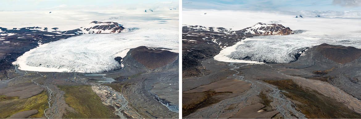 Bringing it back now, we are able to share more of how Riverbed relates to Eliasson’s Icelandic heritage — for him this is also what is left as the ice melts and the glaciers retreat. Like Australia, Iceland is experiencing enormous climatic changes, the impacts of which are clear in the artist’s photographic series Glacier melt 1999/2019 2019 (illustrated) also in the exhibition.