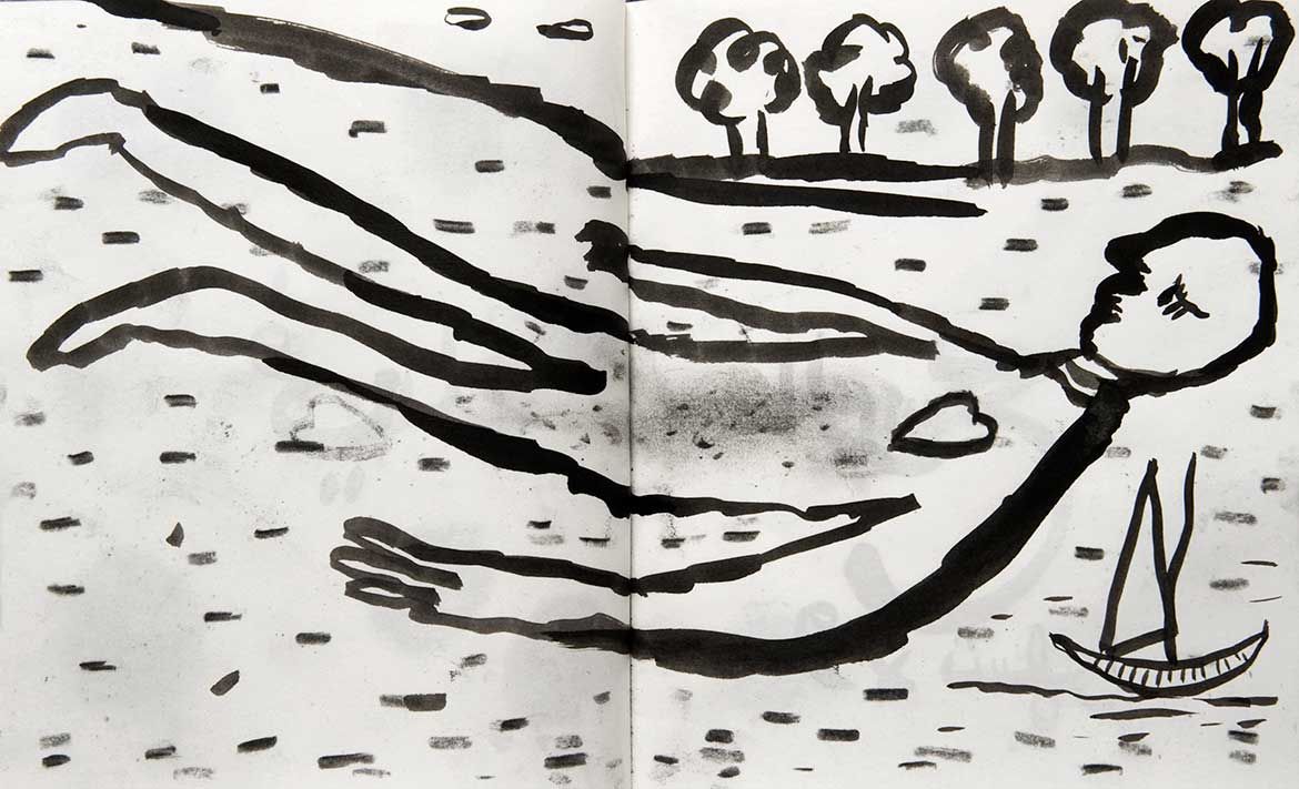 A drawing form Ali’s Boat, published by the Children’s Art Centre for APT9 / View full image
