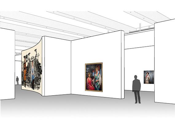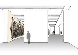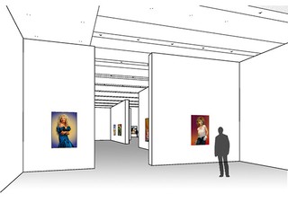 Particular attention was given to providing strong sightlines to key works through the architectural build of the partitions. This would enable the viewer to make connections between different series of works as they move through the exhibition space. The sequence of the rooms and placement of each of the works were guided primarily by Sherman. Using an architecture design software,QAGOMA generated perspectives that demonstrated connections within each space and these spacial concepts were key in the ongoing correspondence with Sherman and the Gallery.
