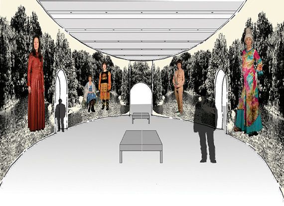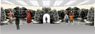 Looming large over the audience, these eclectic characters stare blankly, their dowdy costumes suggesting they could be part of an amateur theatre troupe.