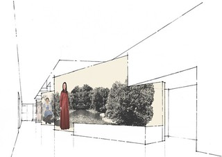In terms of the display of the mural, the Gallery envisioned its presence be integrated within the overall exhibition experience, thus several options were explored, experimenting with scale and configuration with consideration given to visual impact and the installation method. One of the initial concepts was to showcase the mural on a concertina wall.