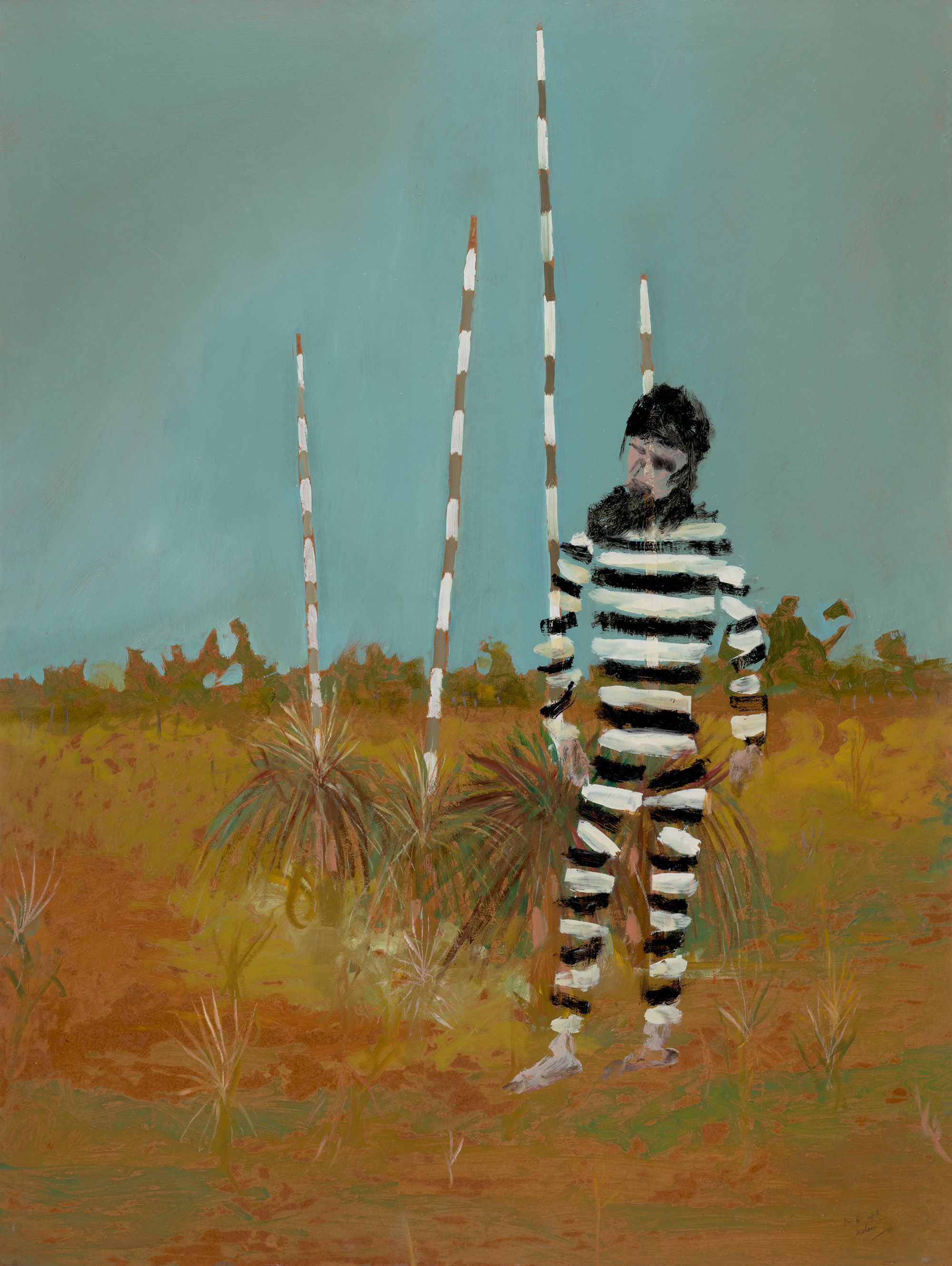 Sidney Nolan, Australia/England 1917–92 / Escaped convict 1948 / Oil-based enamel on hardboard / 122 x 91.5cm / Purchased 2024. The Josephine Ulrick and Win Schubert Charitable Trust Collection: The Josephine Ulrick and Win Schubert Charitable Trust, Queensland Art Gallery | Gallery of Modern Art / © The Trustees of the Sidney Nolan Trust/DACS/Copyright Agency / View full image