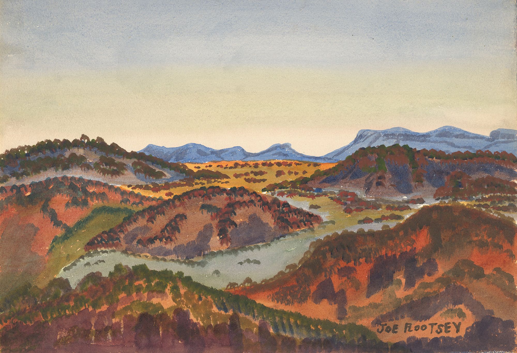 Joe Rootsey, Barrow Point people, Ama Wuringu clan, Australia 1918–63 / (Wakooka, inland from Barrow Point) 1959 / Watercolour on paper / 28.7 x 39.5cm / Purchased 2002. QAGFoundation Grant / Collection: Queensland Art Gallery | Gallery of Modern Art / © Joe Rootsey Estate / View full image