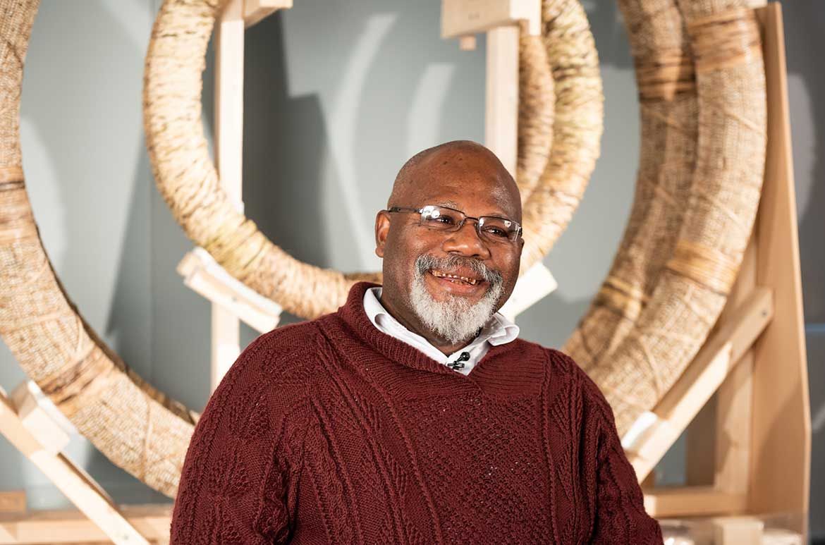 Gideon Kakabin with commissioned Loloi of Tutana’s for APT9, 19 July 2018 / View full image