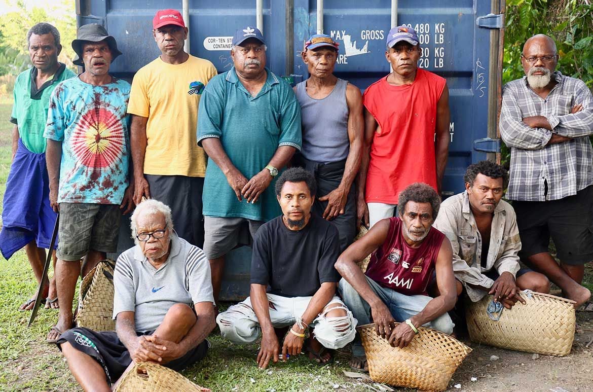 The APT9 Tutana team with packed container ready for shipping, Nangananga village, East New Britain, July 2018. Gideon Kakabin (far right). / View full image