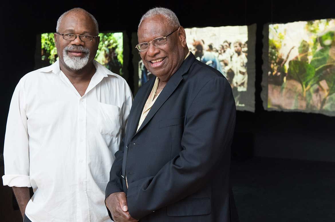 Gideon Kakabin and Sir John Kaputin, a Bit na Ta, Queensland Art Gallery, 20 October 2016 / View full image