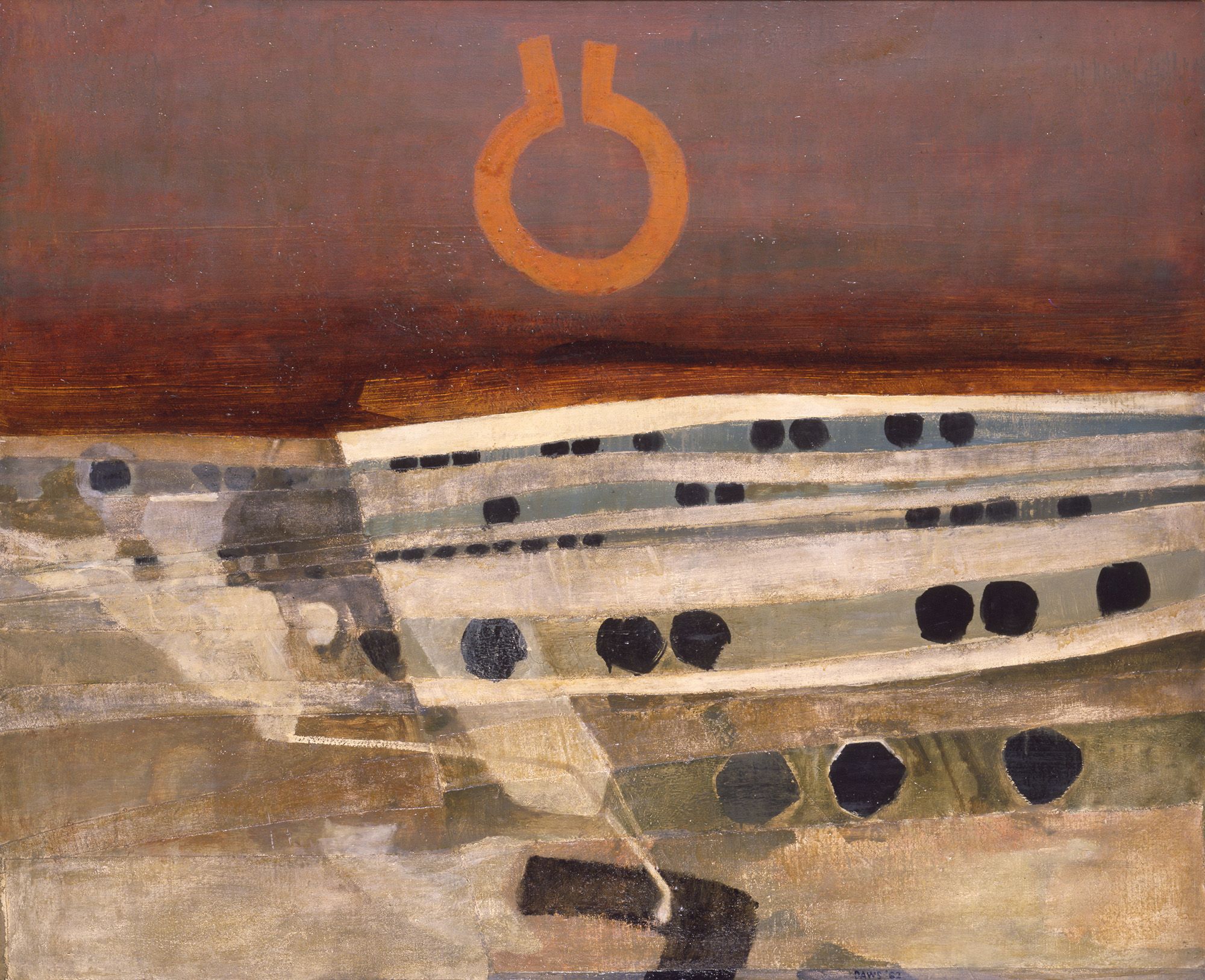 Lawrence Daws, Australia 1927–2025 / Mandala VI 1962 / Oil on canvas on composition board / 124 x 152.4cm / Gift of the QAG Society 1963 / Collection: Queensland Art Gallery | Gallery of Modern Art / © QAGOMA / View full image