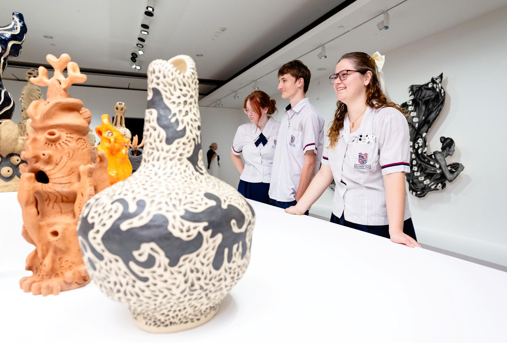 We know transport costs to get here can be a barrier for some schools. ‘Destination QAGOMA’ supports eligible Queensland schools to travel to the gallery and experience a class visit.